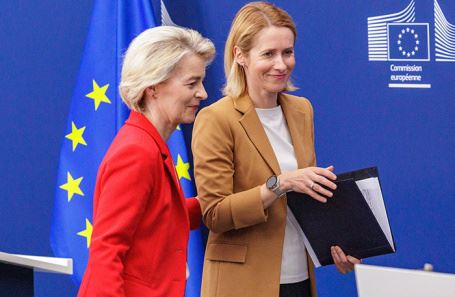 Глава Еврокомиссии Урсула фон дер Ляйен и глава дипслужбы ЕС Кая Каллас (слева направо). Архив. Фото: LIVIER MATTHYS/EPA/TASS